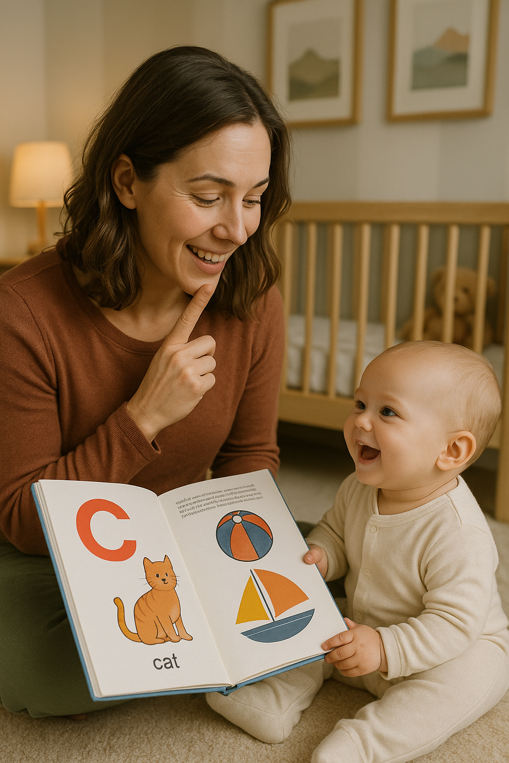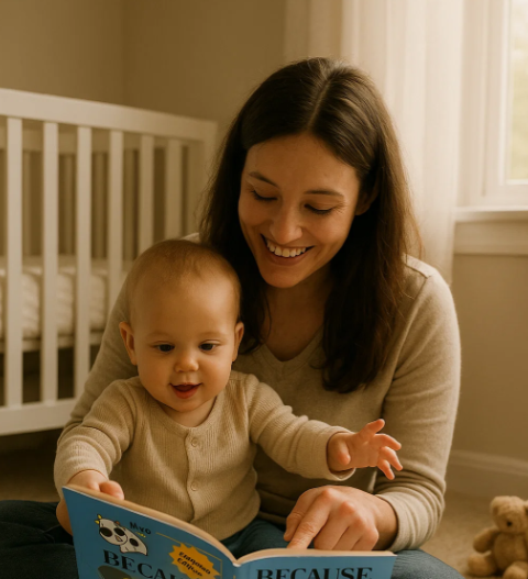 This book teaches you just as much as it teaches your baby! It’s coauthored by a Speech Pathologist and built around science-backed strategies, stages that grow with your baby, and teaching tips that guide you in real time.